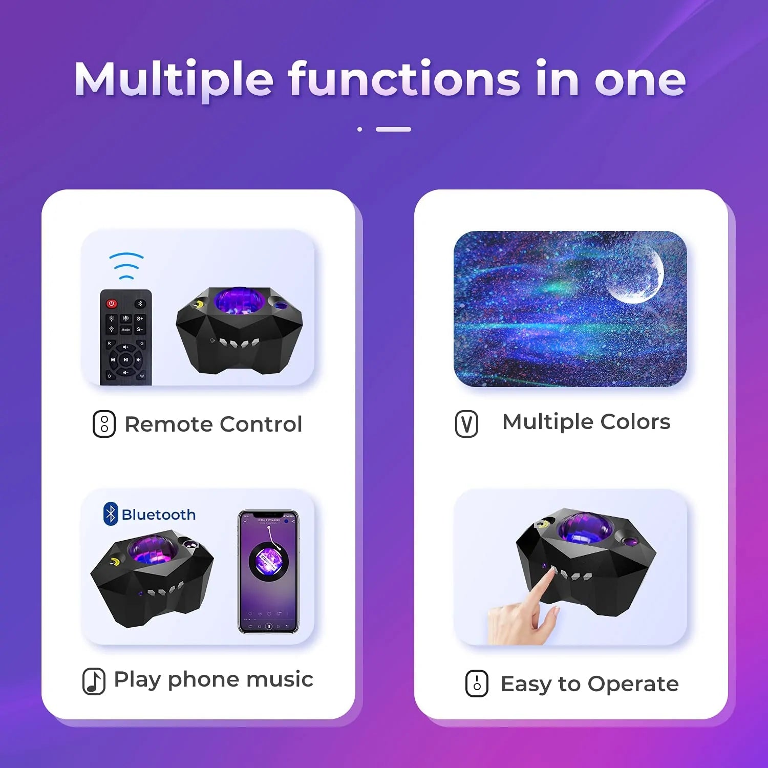 • 🎶 Music-Synced Magic: Built-in Bluetooth speaker lets lights move in rhythm with your favorite songs for a fully immersive experience.
